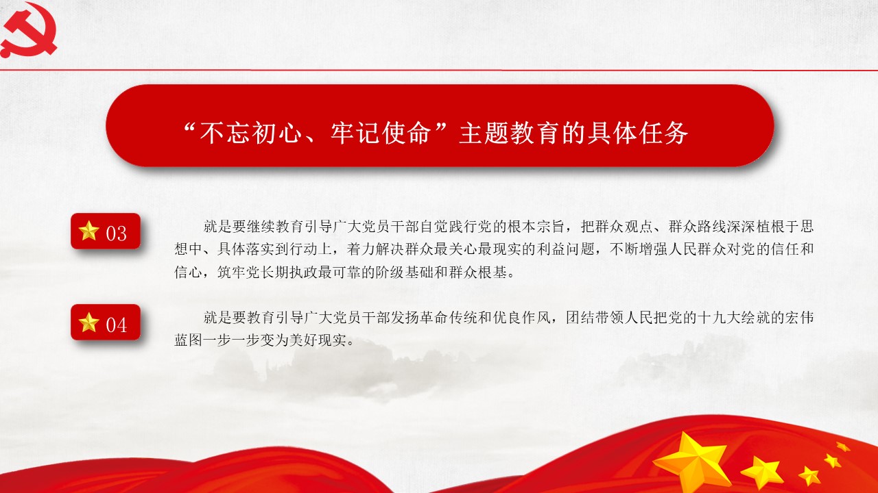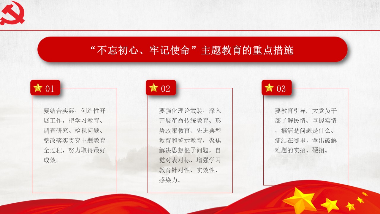 5月31日“不忘初心、牢記使命”主題教育工作會議31日在北京召開。中共中央總書記、國家主席、中央軍委主席習近平出席會議并發(fā)表重要講話。他強調,為中國人民謀幸福,為中華民族謀復興,是中國共產黨人的初心和使命,是激勵一代代中國共產黨人前赴后繼、英勇奮斗的根本動力。開展“不忘初心、牢記使命”主題教育,要牢牢把握守初心、擔使命,找差距、抓落實的總要求,牢牢把握深入學習貫徹新時代中國特色社會主義思想、...